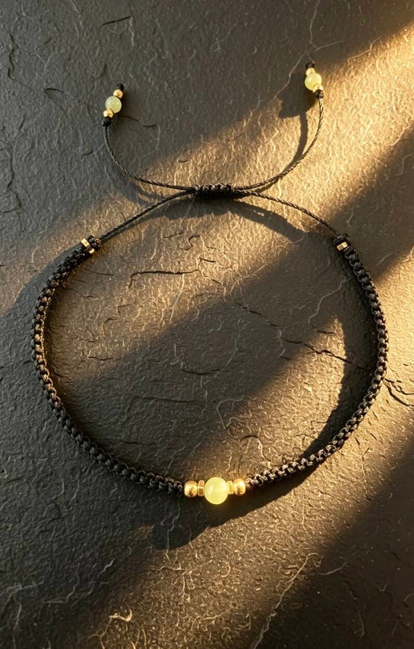 🌿Ręcznie pleciona makramowa bransoletka z kamieniem Prehnitu.