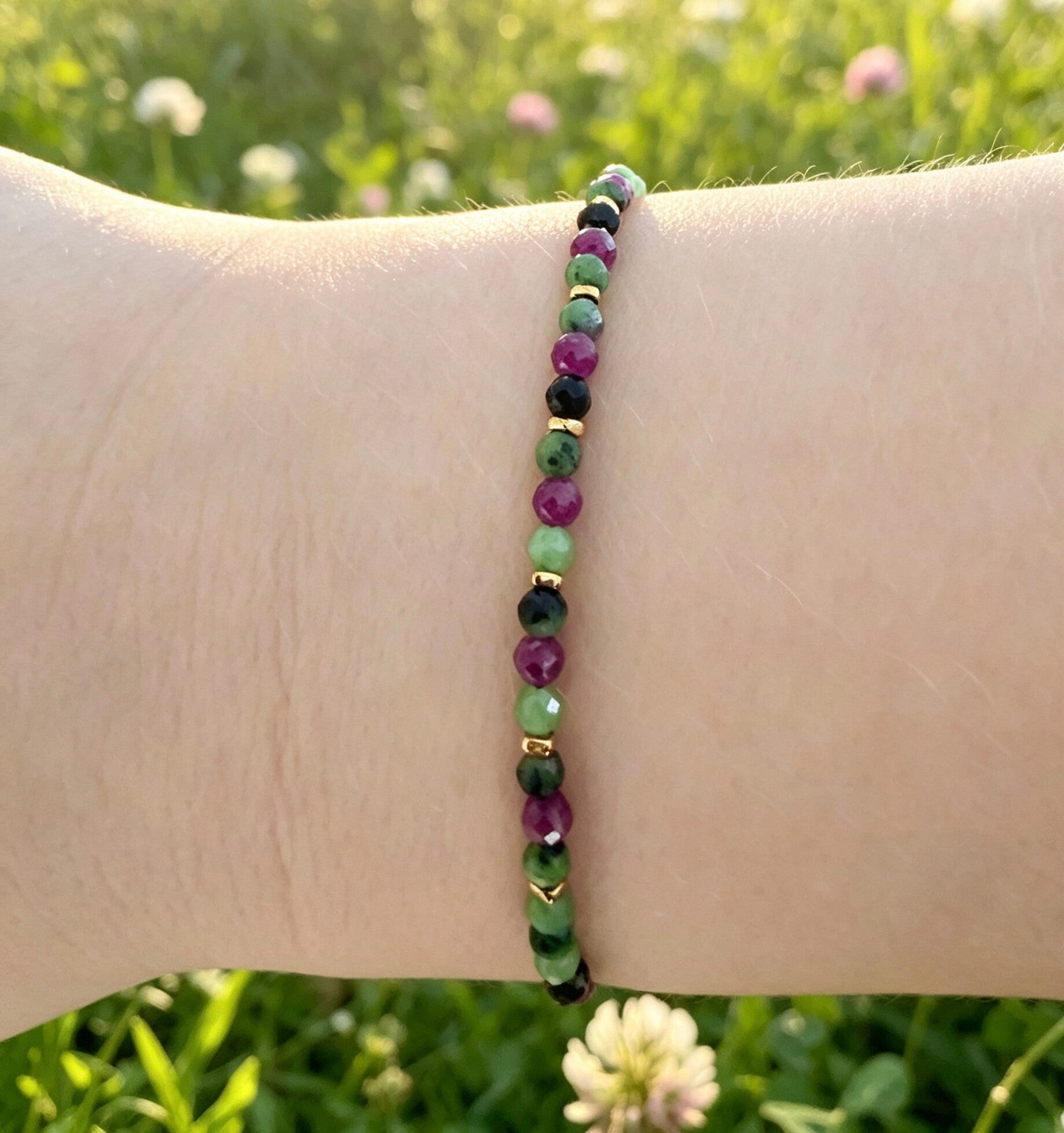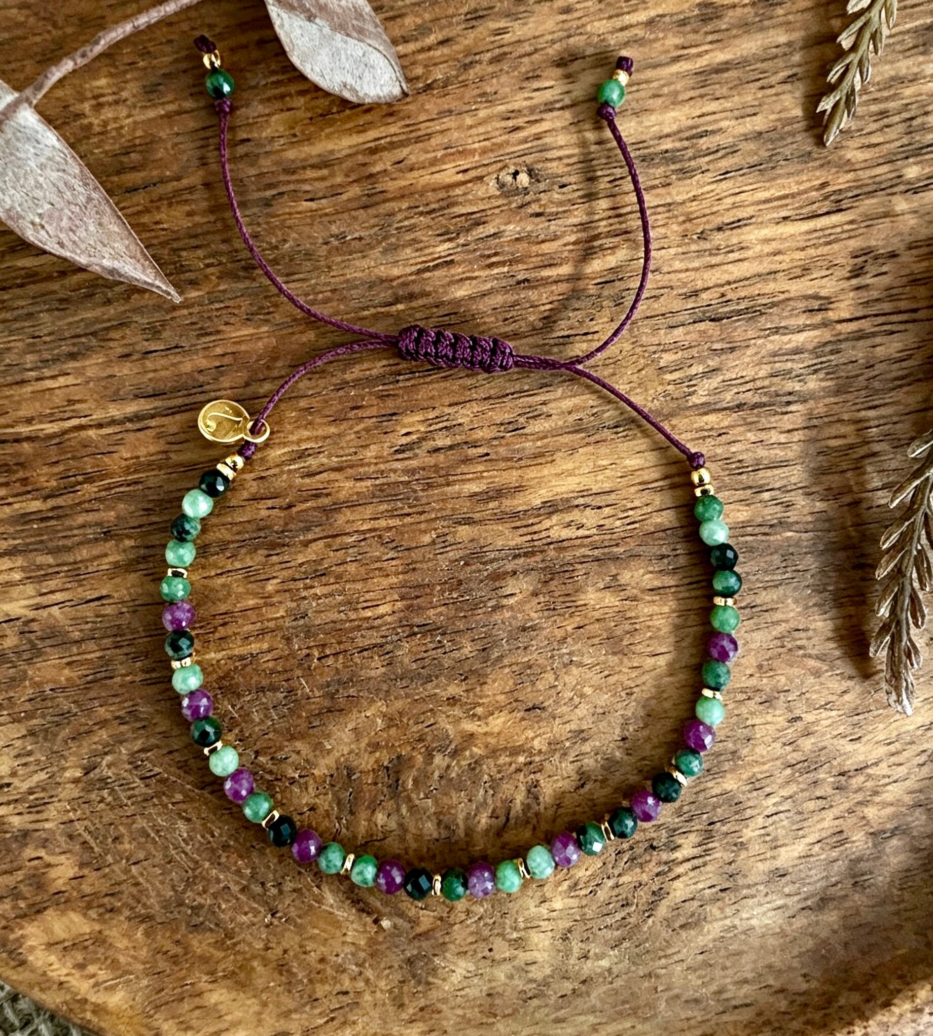 🩷💚 Sznurkowa bransoletka z kamienia Zoisytu i Rubinu