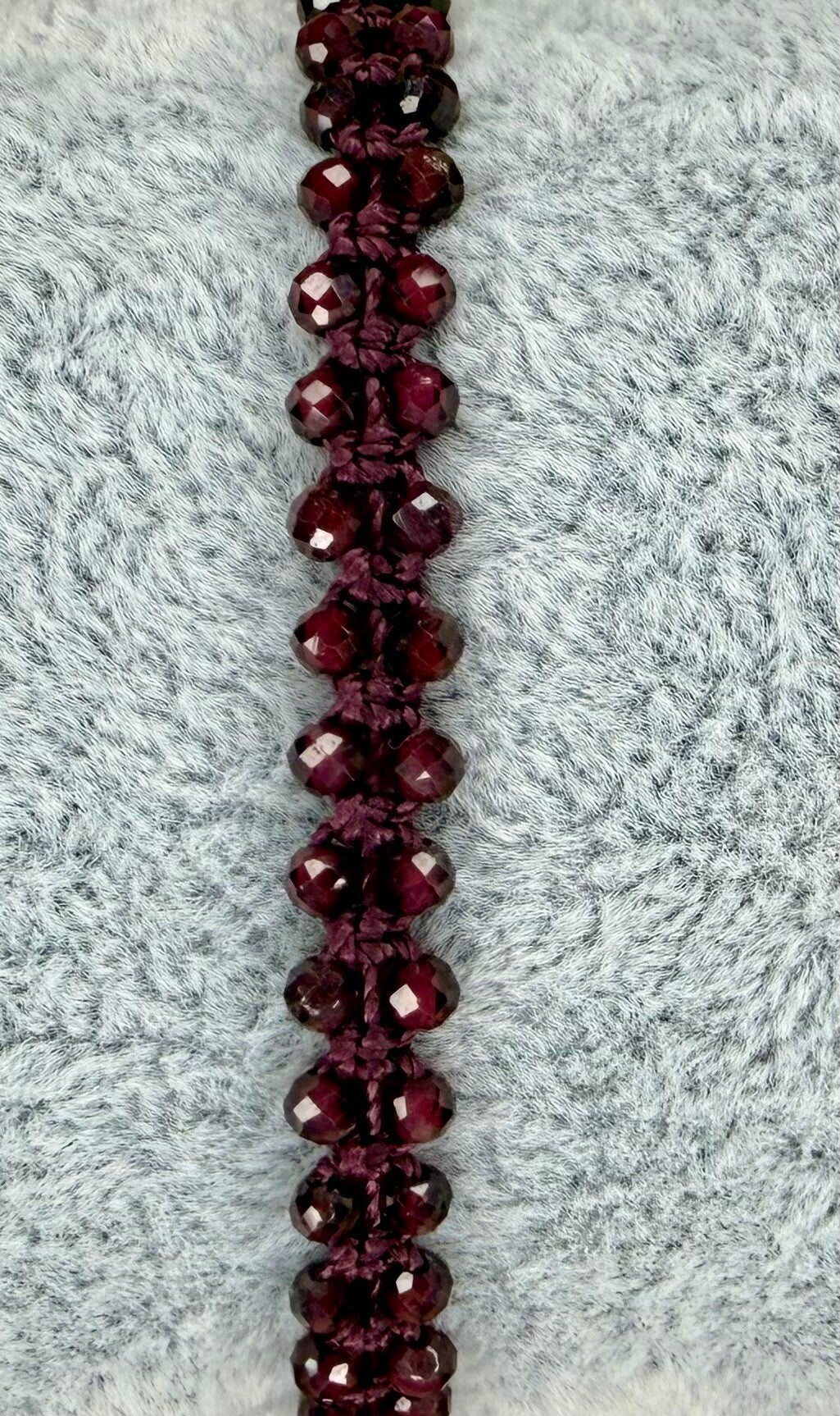 馃尯 Bransoletka r臋cznie pleciona z makramowego sznurka i kamieni Granatu